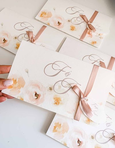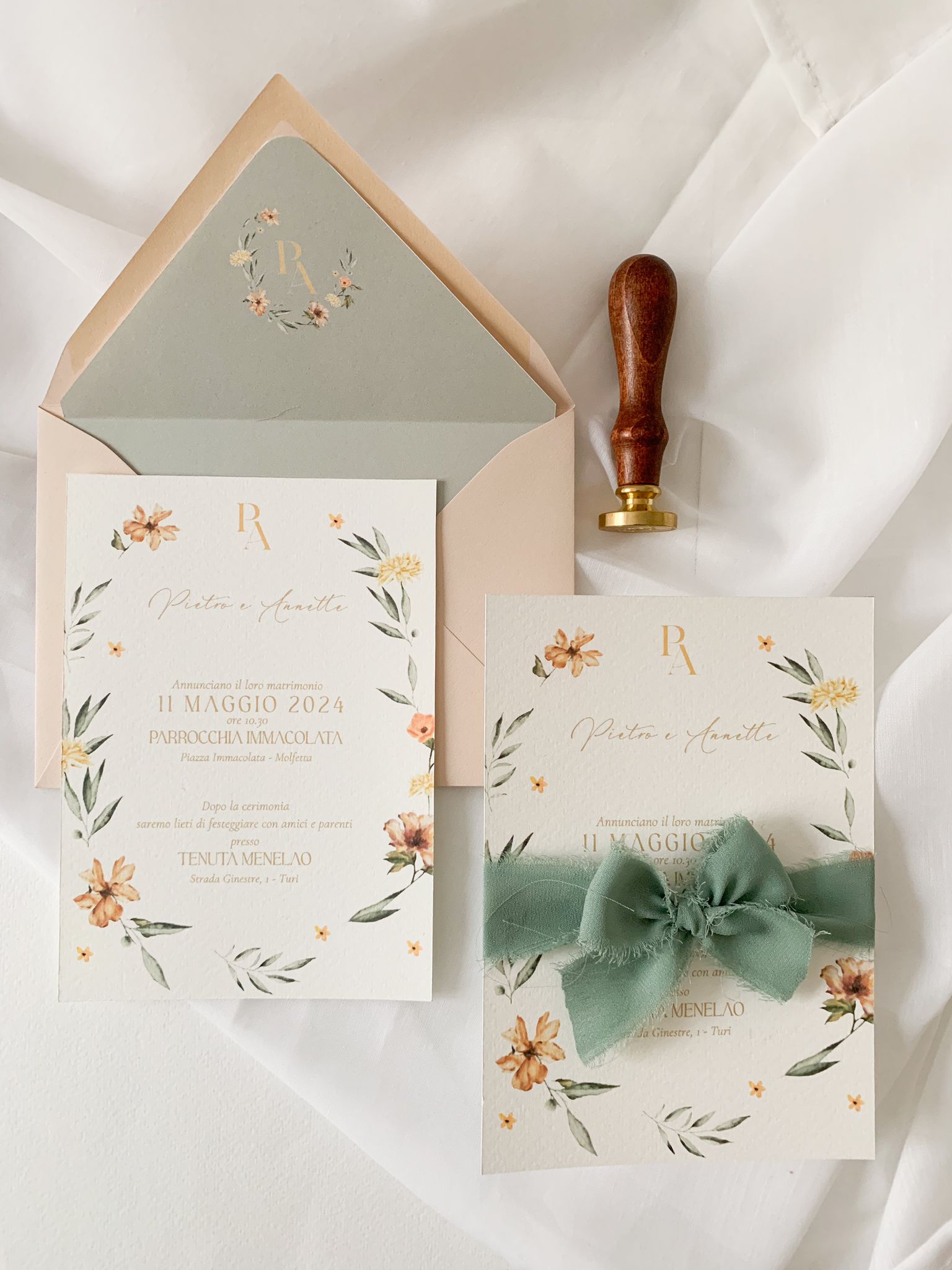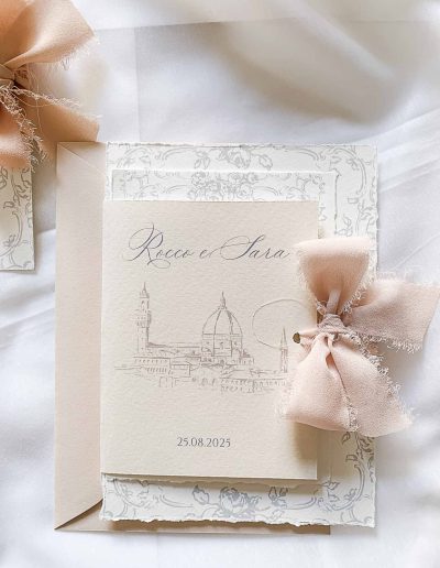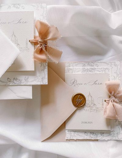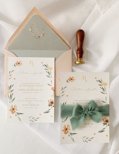 Ogni modello della linea semi custom è personalizzabile negli accessori , ovvero potete scegliere il colore della busta, il colore dei font, e gli accessori che volete ( come chiusura in ceralacca, nastro in seta , fascetta chiudi busta)