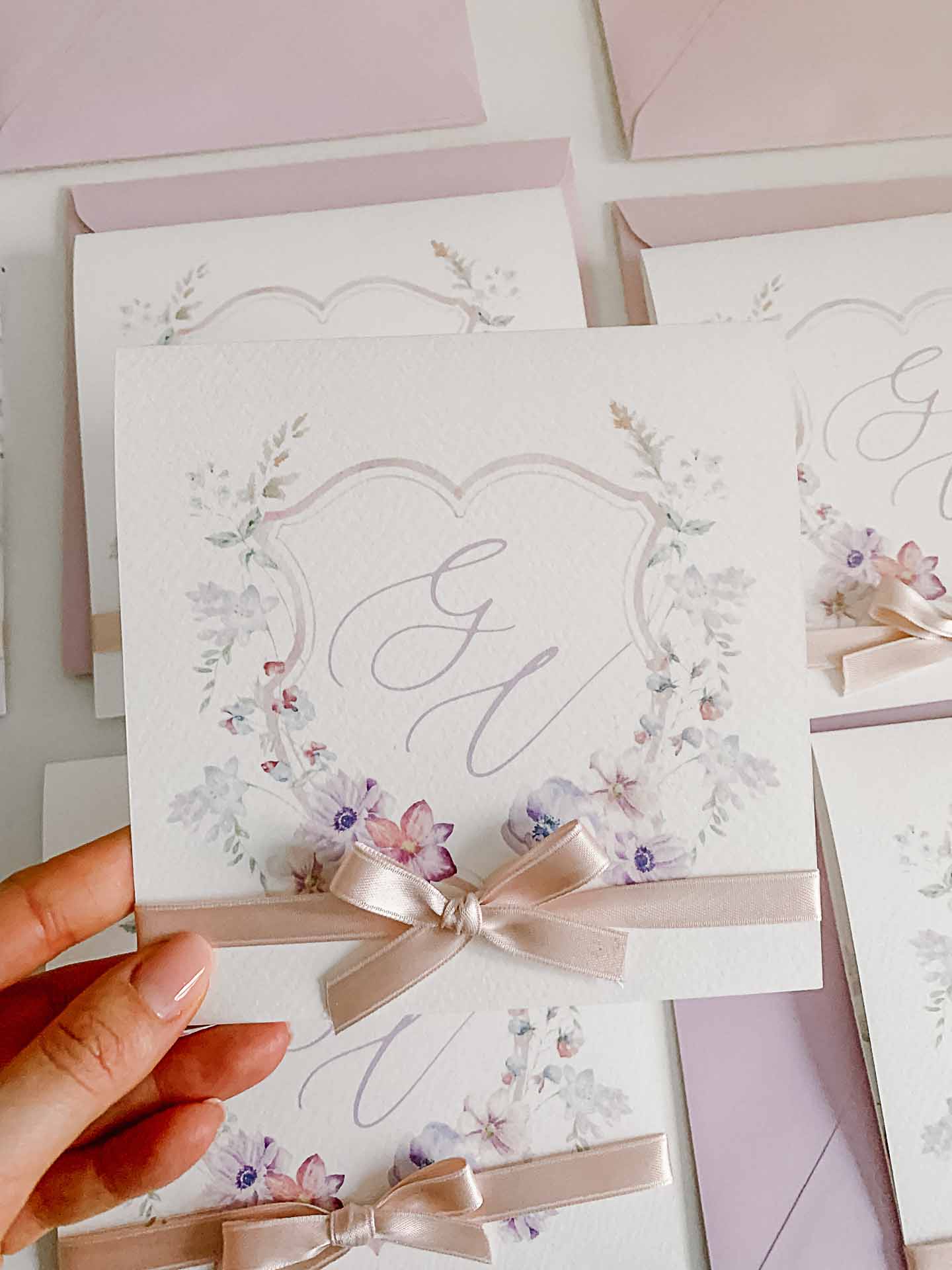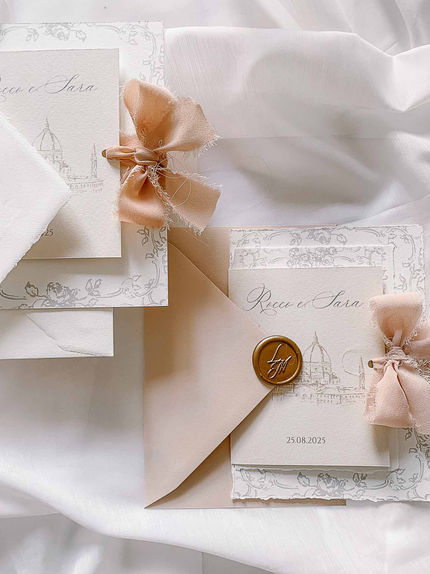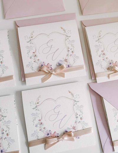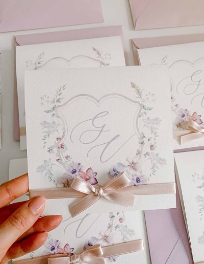 Cosa è la linea semi custom? è una linea semi personalizzata, ciò significa che potete personalizzare i font, i colori degli accessori come nastri, buste, ceralacca, ma non il disegno grafico.